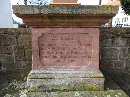 | 08:56, 1. Apr. 2018 | Kreuz Kapelle Alsterweiler Kartusche.JPG (Datei) | 113 KB | Matzinger | Das Bild zeigt die Kartusche mit der Inschrift am Tischsockel des Erinnerungskreuzes in Alsterweiler bei der Kapelle. Der Text erinnert an die Mission, die in Maikammer im Jahre 1852 durchgeführt worden ist. | 1 | |