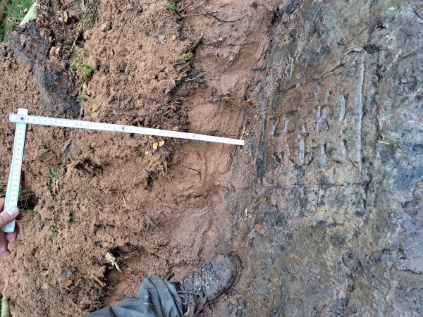 | Beschreibung | Der Stein trägt die laufende Nummer 71 für Maikammer-Alsterweiler und 116 auf der Seite für Sankt Martin, Grabungstätigkeit im Oktober 2023 zur Auffindung des Steins, Vermessung der Überlagerungshöhe mit angeschwemmten Sedimenten des Argenbaches und eines unbenannten Zuflusses. |
