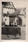 Laufbrunnen in der Schulgasse (1940). Im Hintergrund ist das Anwesen Friedhofstraße 222 zu erkennen.