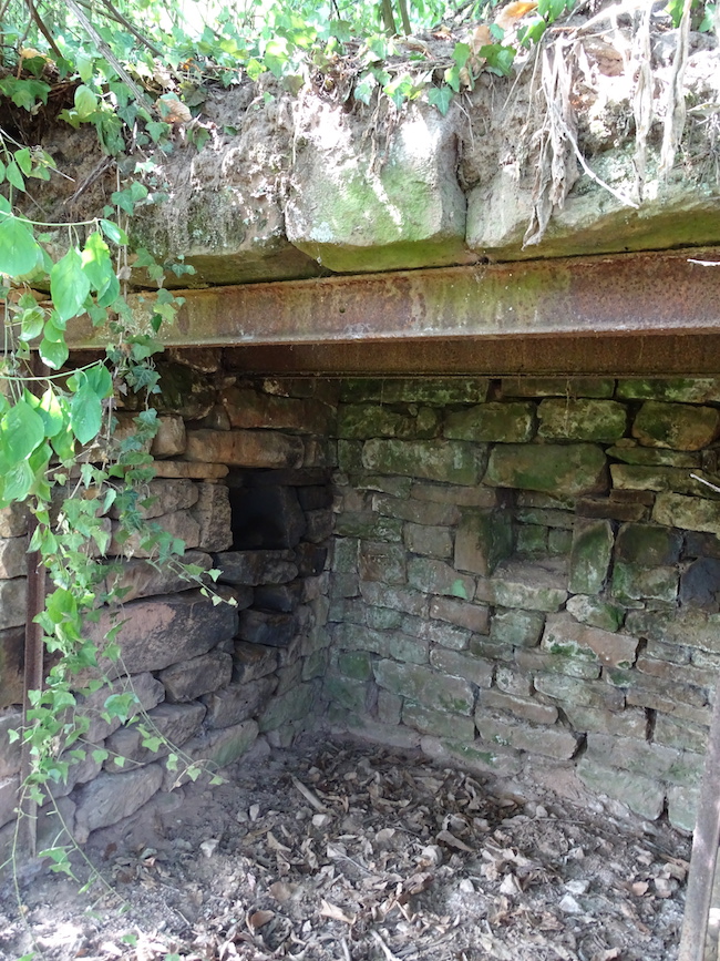 Das Bild zeigt das Weinberghaus am Eichelberg an der Nordseite - Detailansicht des Eingangsbereiches. Gut zu erkennen sind die Stahlträger, die wohl nachträglich eingebracht worden sind.