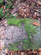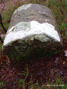 Der Grenzstein steht zwischen Wetterkreuzberg und Kanzel. Die Fotografie zeigt den Blick auf die Weisung, auf den Kopf des Steines.