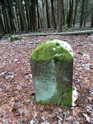 Grenzstein Nr. 140 an der Ostflanke des Kanzelkopfes oberhalb des Argenbachtales.